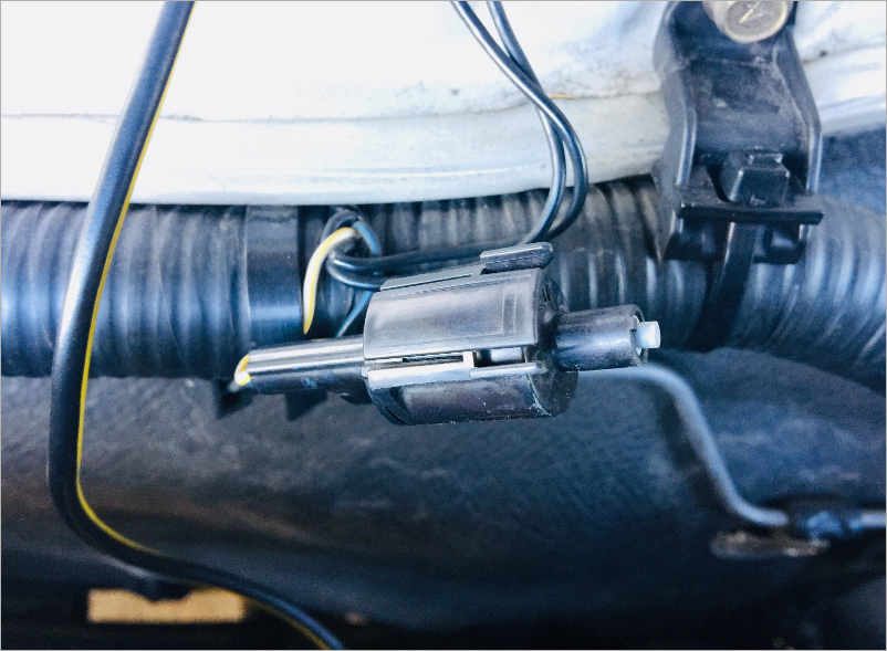 It looks like a sensor. Can someone please tell me what it is? It's only being held in place by a single yellow/white wire. Is it meant to be mounted in something else?