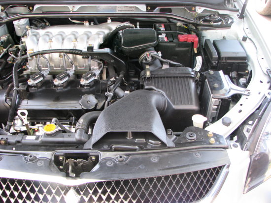 The intake (center/front) in an import from the 3.8 litre U.S. Galant, and has more flow than the smaller one we have factory fitted, The K&N filter we use is for the Galant also, and seems to have no or a negative effect when fitted without the 90mm intake.